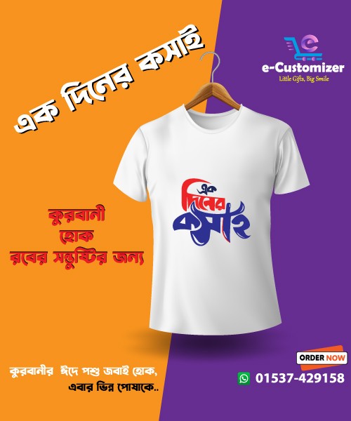 এবারের কুরবাণী হোক ভিন্ন পোষাকে। ভাইরাল ডিজাইন 'এক দিনের কসাই' টি-শার্ট এখন-Creditshopbd তে।